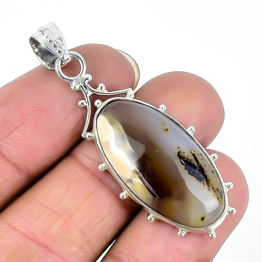 Montana Agate Stone Solid Sterling Silver New Birthday Elegant Pendant Jewelry