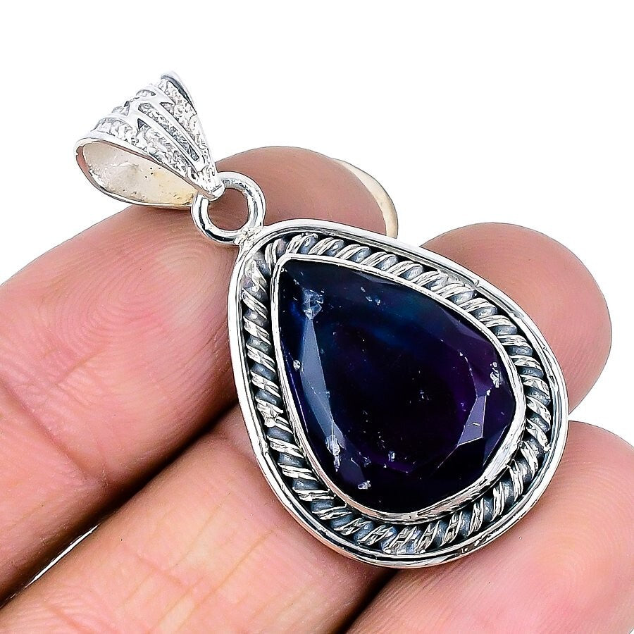 Natural Fluorite faceted 925 Sterling Silver Boho Engagement New Wife Pendant