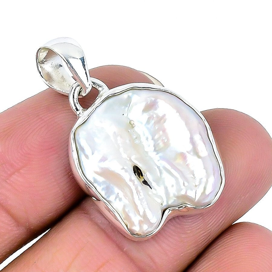 Biwa Pearl Gemstone Solid Sterling Silver Mother Handcrafted Anniversary Pendant