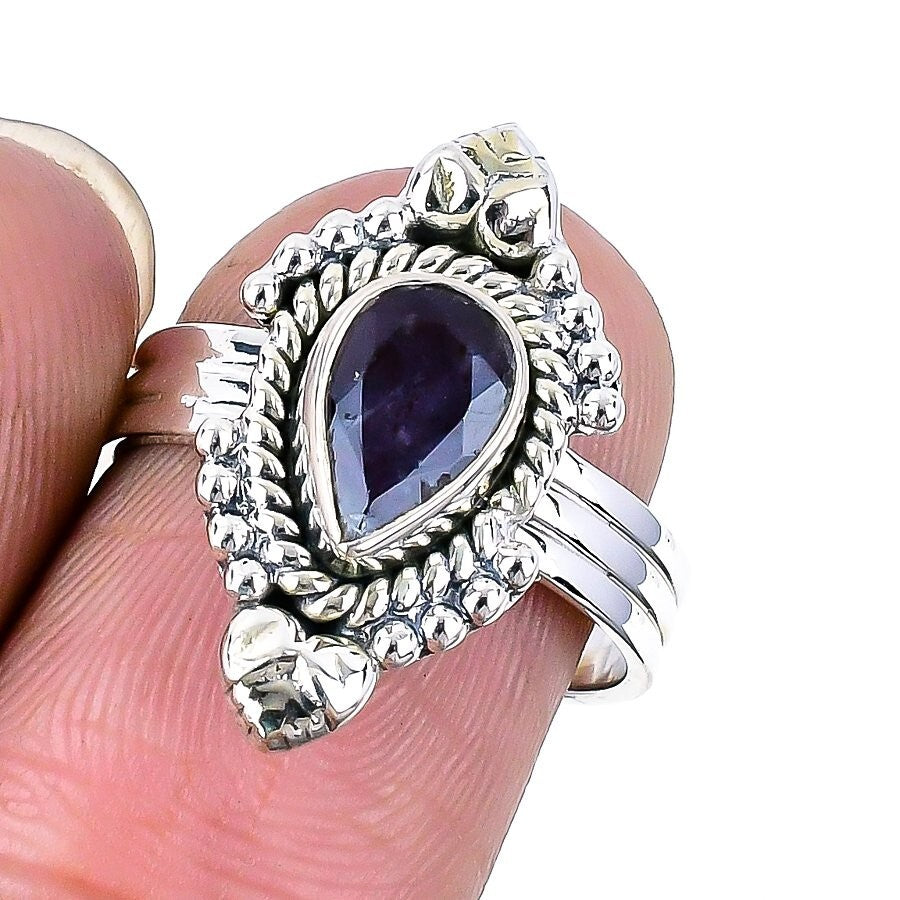 Amethyst Faceted Gemstone Solid Silver Wedding Statement New Ring Jewelry Size 8
