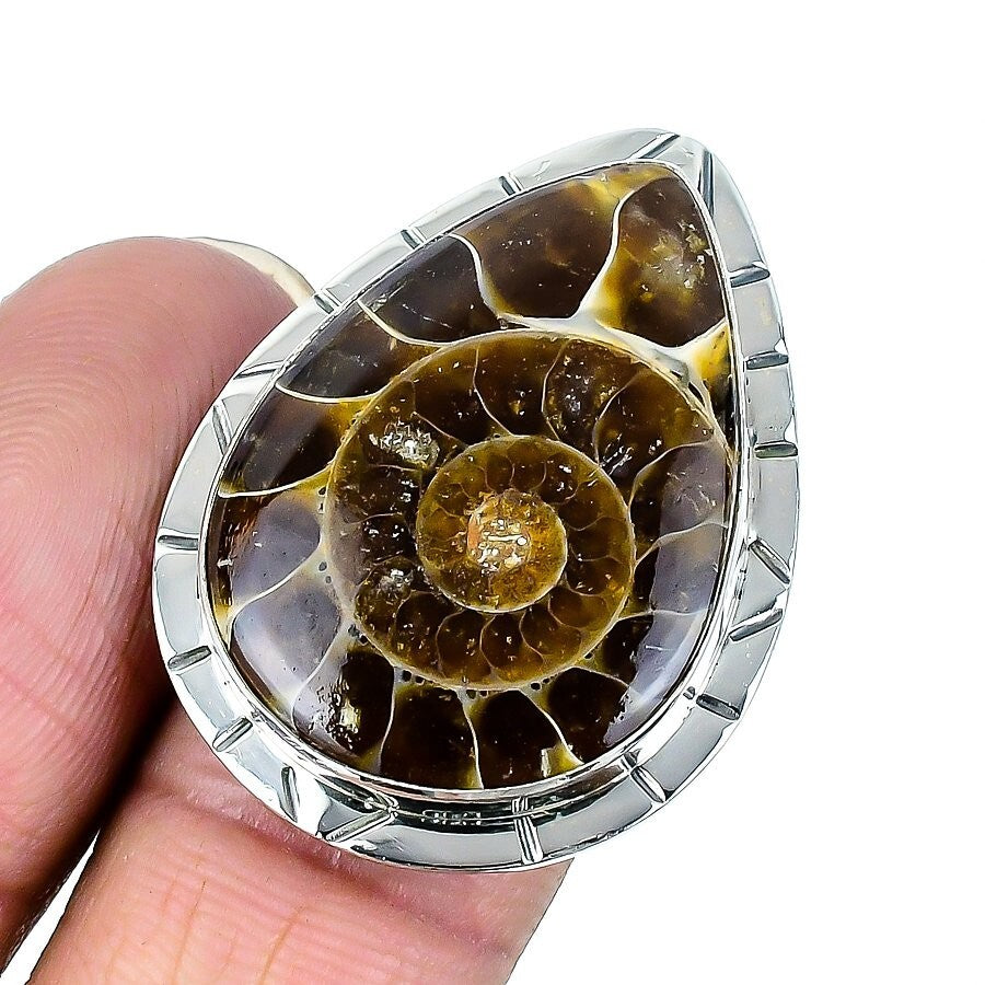 Natural Ammonite Fossil Anniversary Statement Ring Jewelry Solid Silver US 10