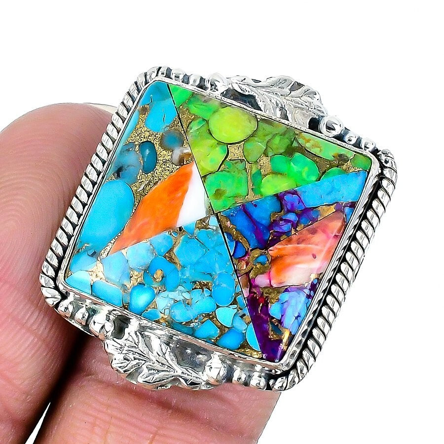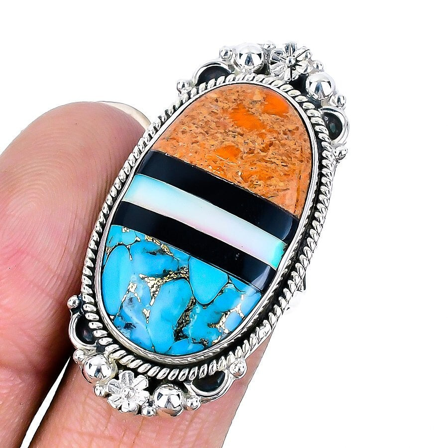 Opal Matrix Spiny Oyster Gemstone Solid Sterling Silver Statement Ring Jewelry