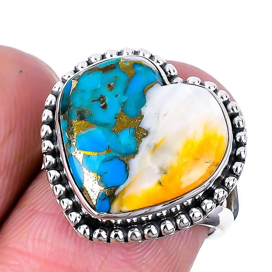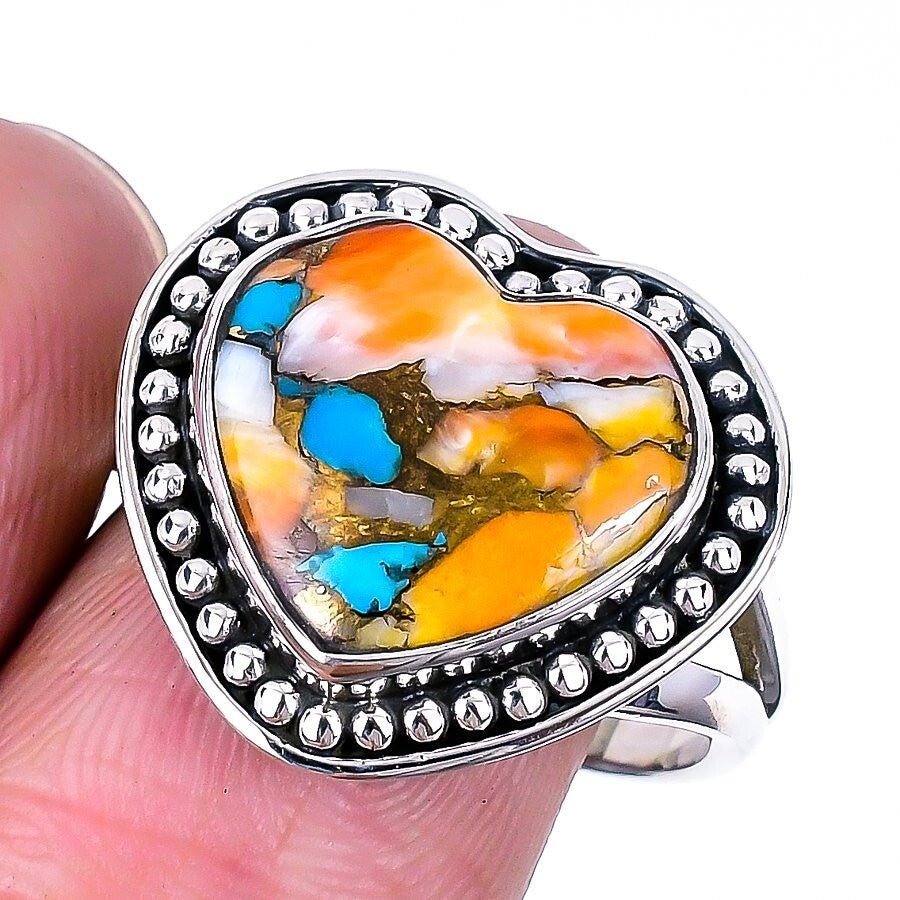 Natural Spiny Oyster Turquoise heart Statement Ring Jewelry 925 Sterling Silver
