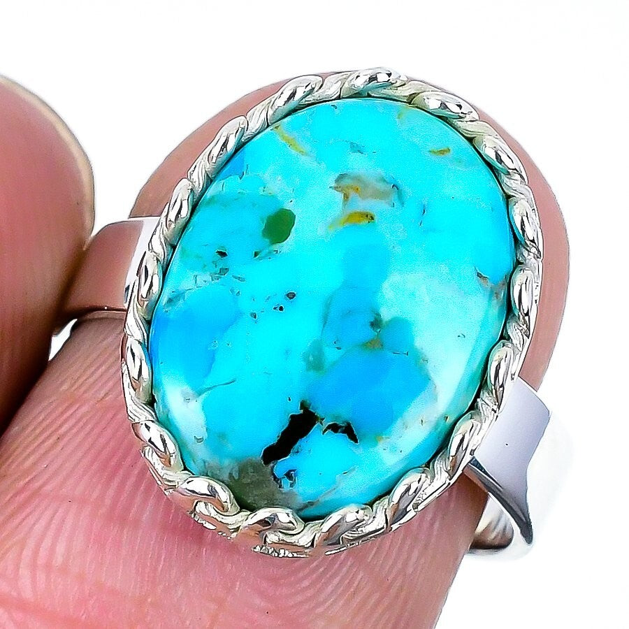 December Mohave Turquoise Stone Statement Ring Jewelry 925 Sterling Silver US 8