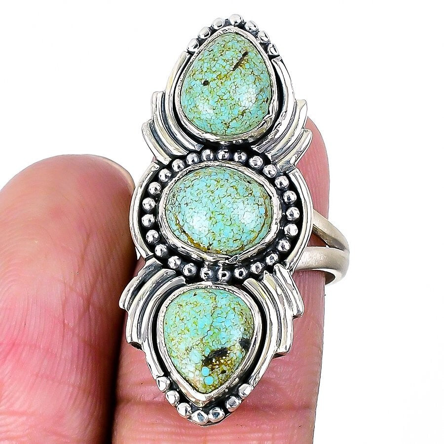 Natural Arizona Turquoise heart Handcrafted Boho Statement Ring 925 Silver US 8