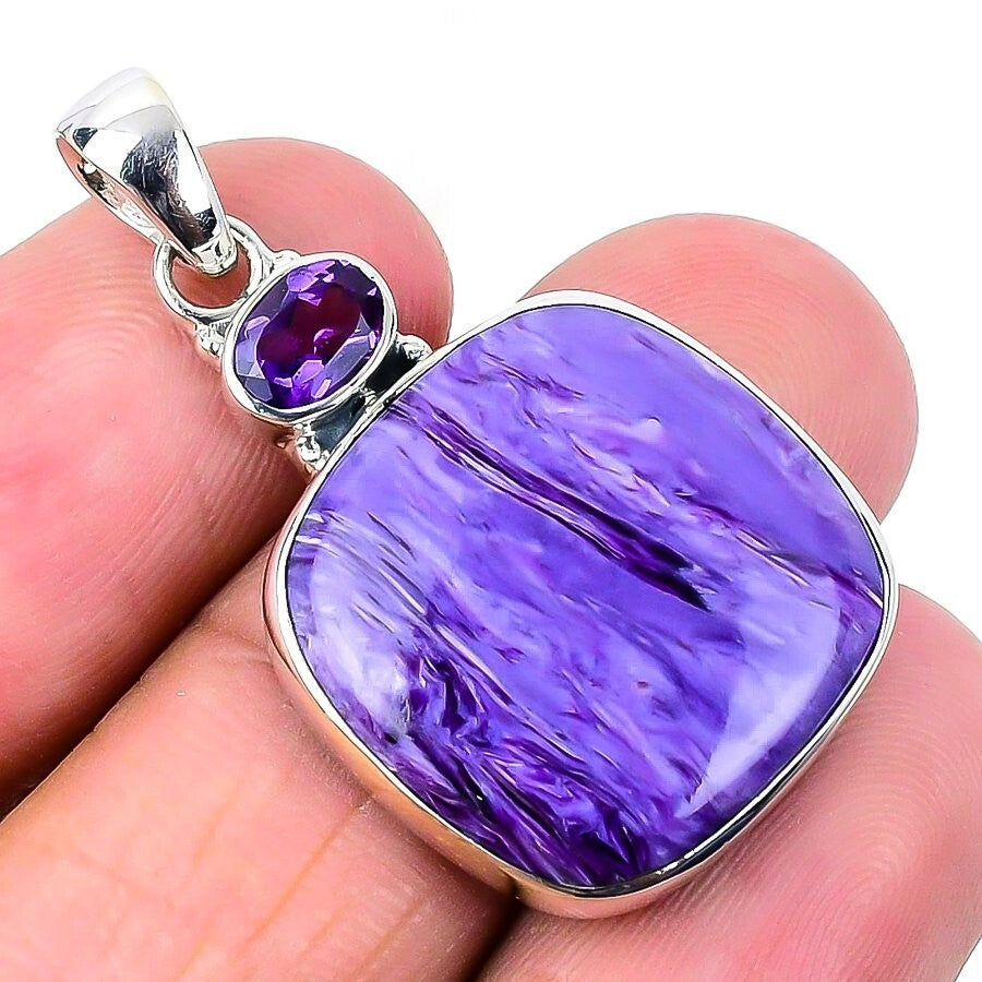 Natural Russian Charoite Handcrafted Birthday New Pendant Solid Sterling Silver
