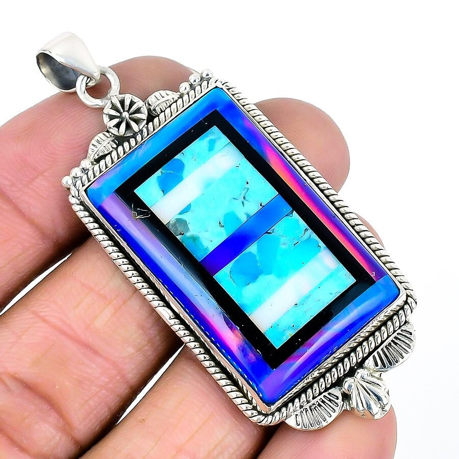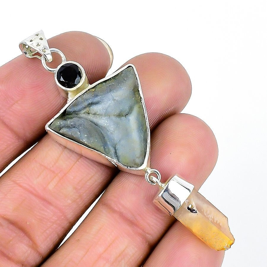 Aurora Opal Matrix Stone Mother Handcrafted Engagement Pendant Sterling Silver
