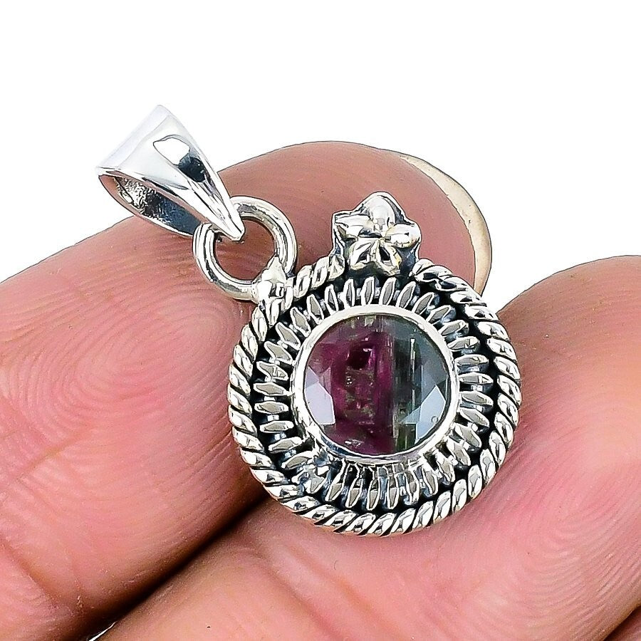 Natural Watermelon Tourmaline Handcrafted Wedding New Pendant Jewelry 925 Silver