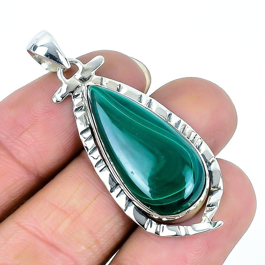 Malachite Gemstone Wedding Anniversary Heart Chakra Birthday Pendant 925 Silver