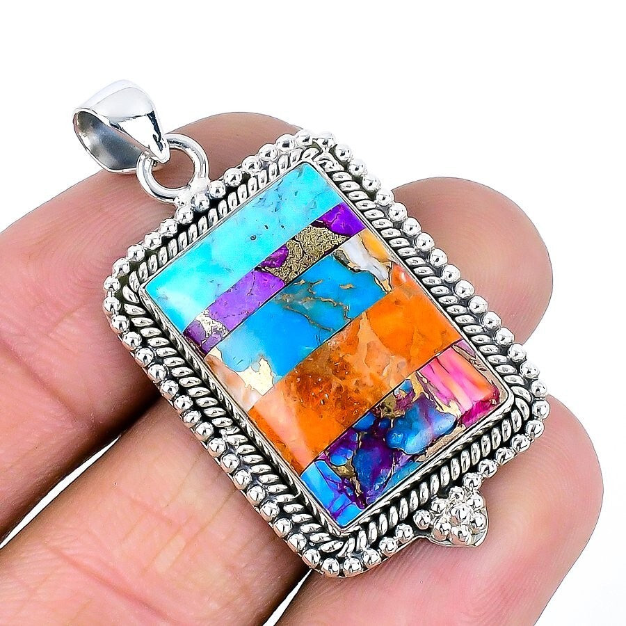 Spiny Oyster Matrix Stone Solid Silver Handcrafted Artisan Trendy Mother Pendant