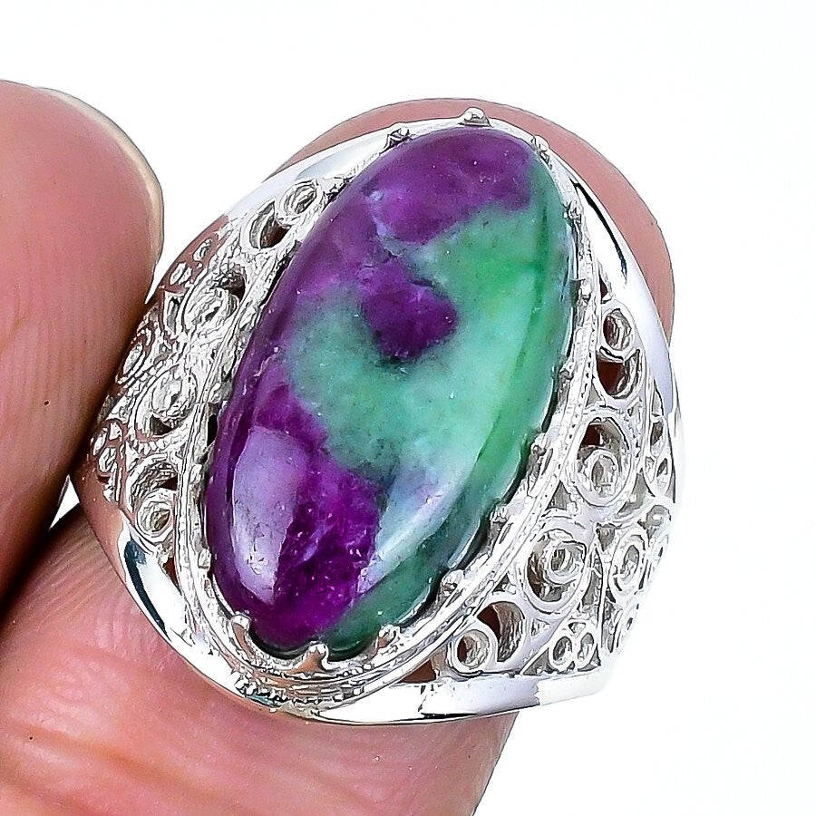 Natural Ruby Zosite Daughter Statement Art Deco Ring Jewelry Size 8 925 Silver