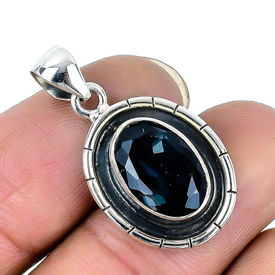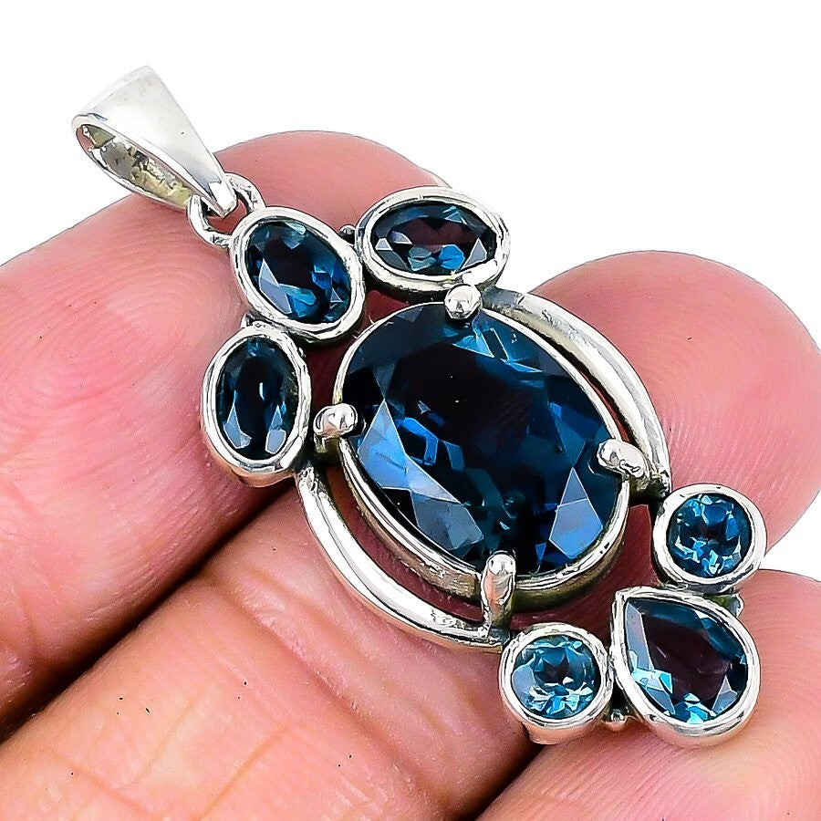 London Blue Topaz Faceted Stone Birthday Best Friend Gift New Pendant 925 Silver