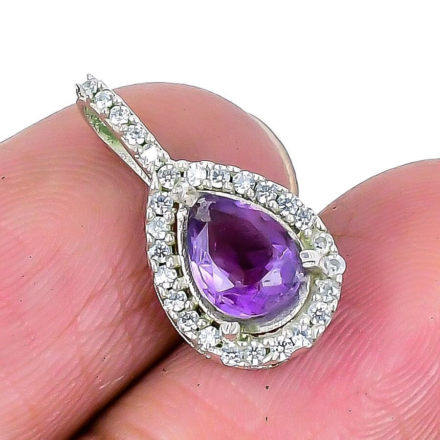 Amethyst Faceted Stone 925Ā SolidĀ Silver Trendy February Wedding Mother Pendant