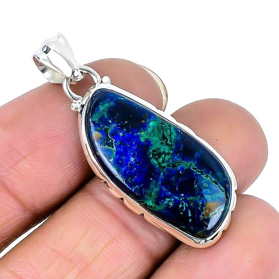 Azurite Malachite Gemstone 925Ā SolidĀ Silver Artisan Elegant Anniversary Pendant