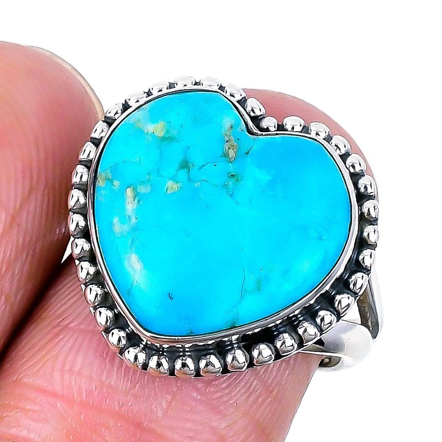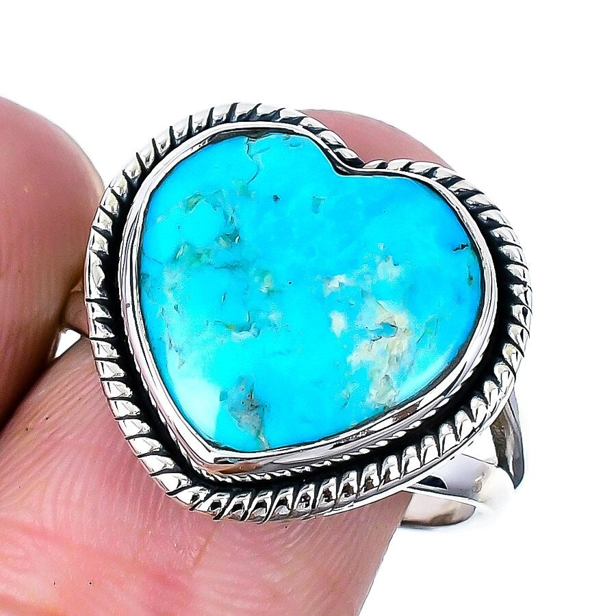 Arizona Turquoise Heart Gemstone 925Ā SolidĀ Silver Statement Wedding Ring Jewelry