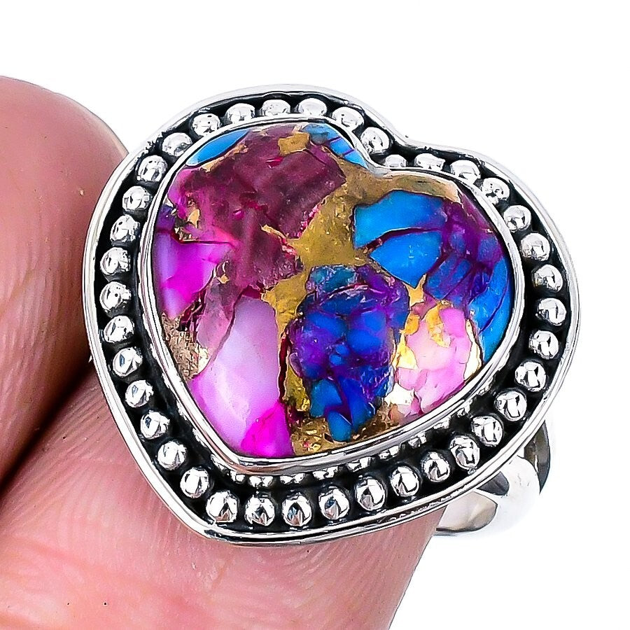 Kingman Pink Spiny Oyster Gemstone Handmade Statement Ring Sterling Silver US 8