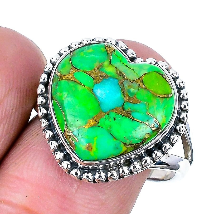 Copper Green Turquoise Heart Stone 925 Sterling Silver Statement Sister New Ring