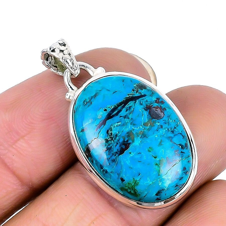 Throat Chakra Chrysocolla Gemstone 925Ā SolidĀ Silver Elegant Handcrafted Pendant