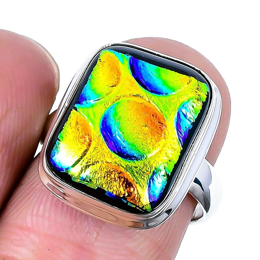 Mexican Dichoric Glass Stone Wife Statement Ring Jewelry Size 7 Sterling Silver
