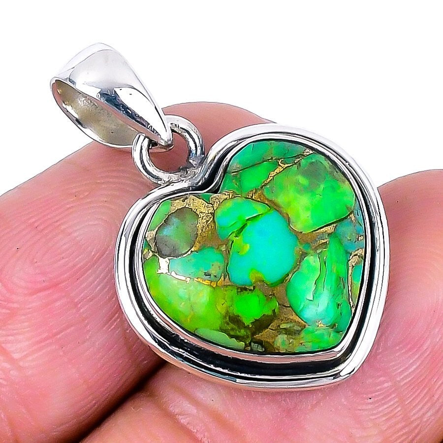 Copper Green Turquoise Gemstone 925 Sterling Silver Anniversary Pendant Jewelry