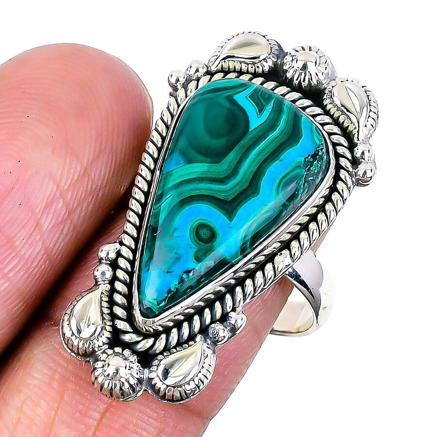 Chrysocolla Malachite Gemstone Solid Sterling Silver Wife Statement Ring US 9.5