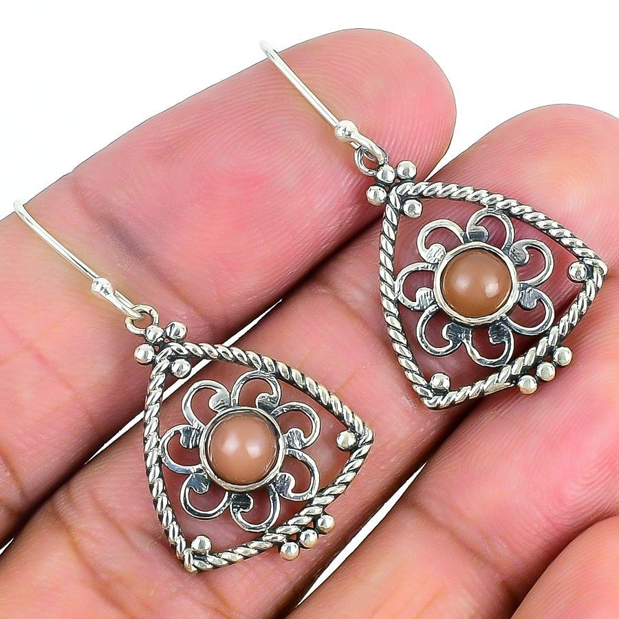 Natural Sunstone Sterling Silver Channel Set Dangle Sisters Day Earrings Jewelry
