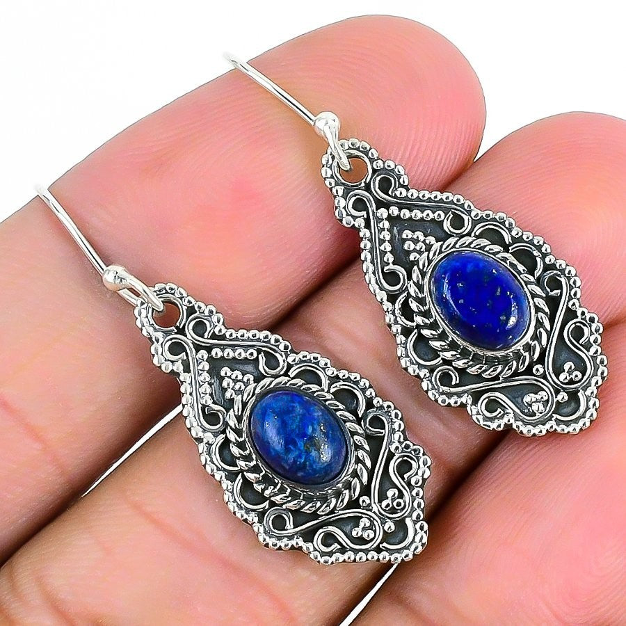 Lapis Lazuli Gemstone Solid Sterling Silver Unique Drop Dangle Earrings Jewelry