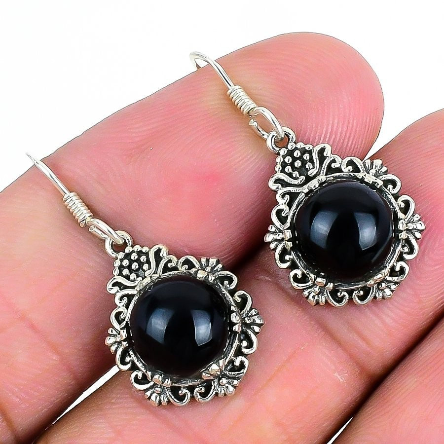 Black Onyx Stone Solid Silver Hook Friendship Day Dangle Engagement New Earrings