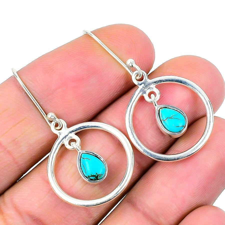 Santa Rosa Turquoise Stone 925 Sterling Silver Sisters Day Drop Earrings Jewelry