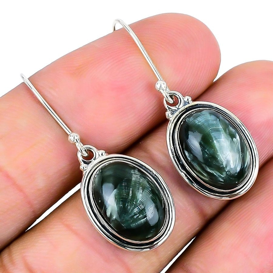 Friendship Day Deal Natural Seraphinite Solid Silver Hook Dangle Drop Earrings