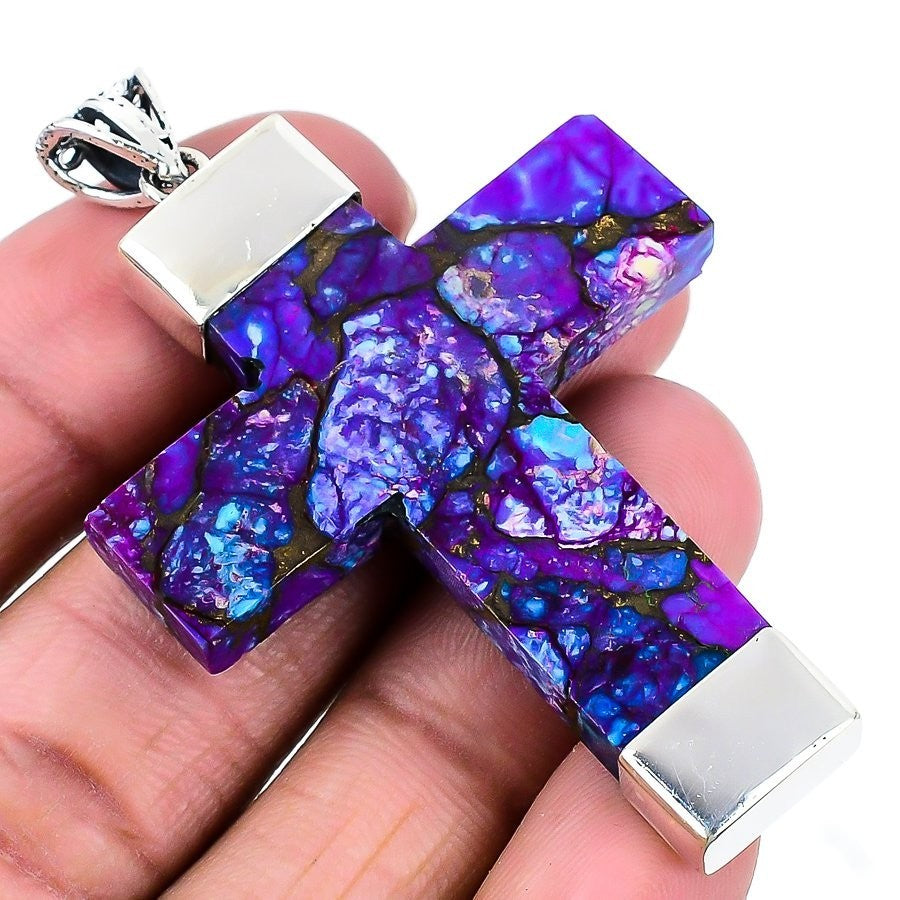 Natural Copper Purple Turquoise Solid Sterling Silver Artisan Pendant Jewelry