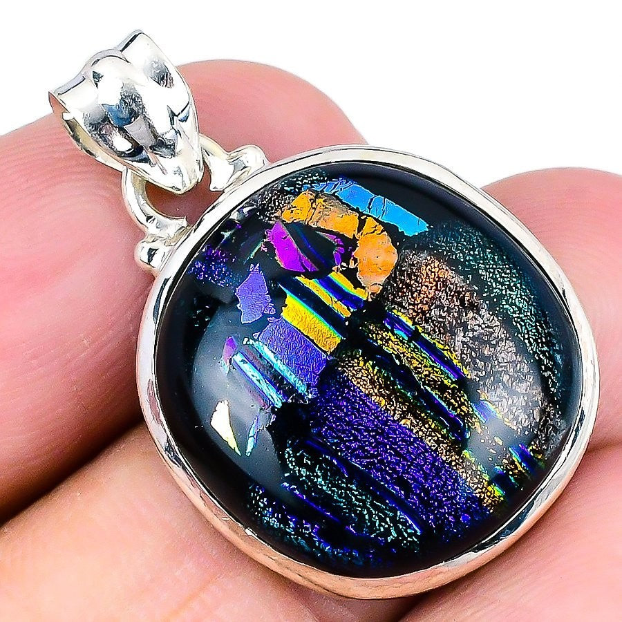 Friendship Day Sale Dichoric Glass Stone Anniversary Wife Pendant Solid Silver