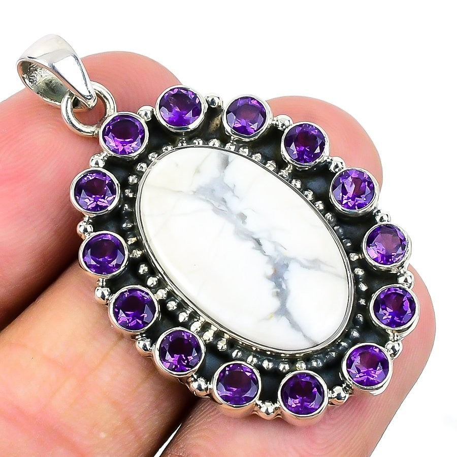 Natural Howlite Jasper 925Ā SolidĀ Silver Elegant Trendy Mother Art Deco Pendant