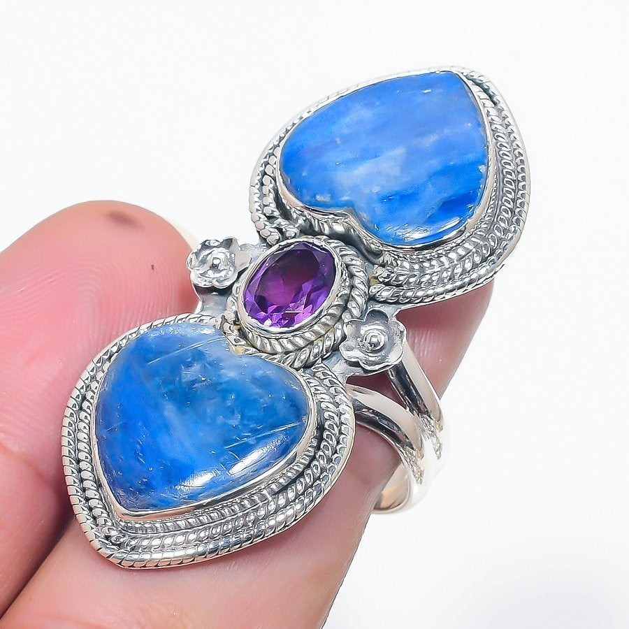 Throat Chakra Natural Blue Kyanite Solid Silver Elegant Statement Sister Ring