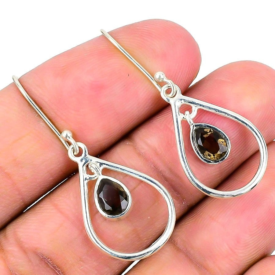 Natural Smoky Topaz Solid Sterling Silver Sister Dangling Hook Ethnic Earrings