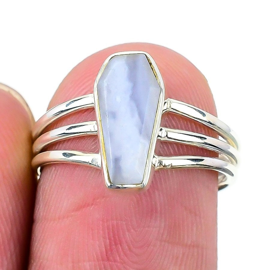 Natural Blue Lace Agate Solid Silver New Birthday Ethnic Statement Ring Size 6.5