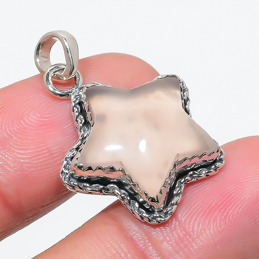 Rose Quartz Stone Solid Sterling Silver Best Sisters Gift Wife Pendant Jewelry