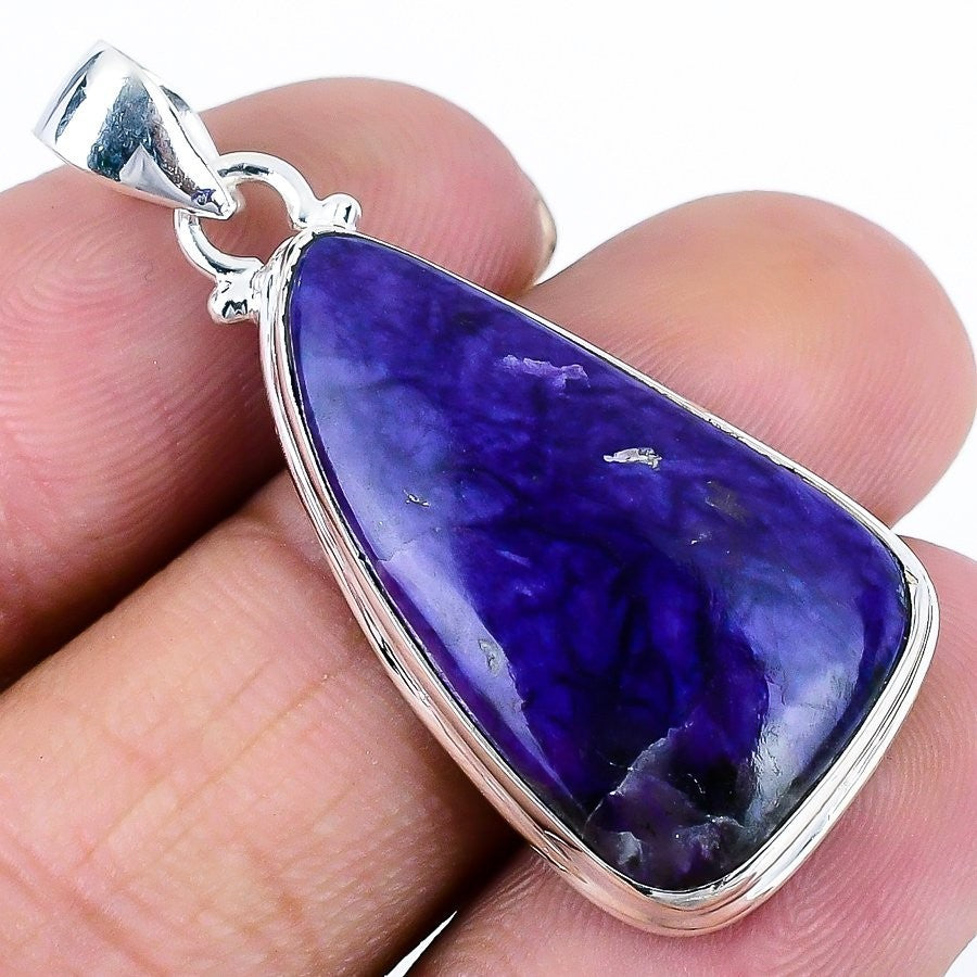 Russian Charoite Stone Solid Silver Wife Handcrafted Friend Gift Pendant Jewelry