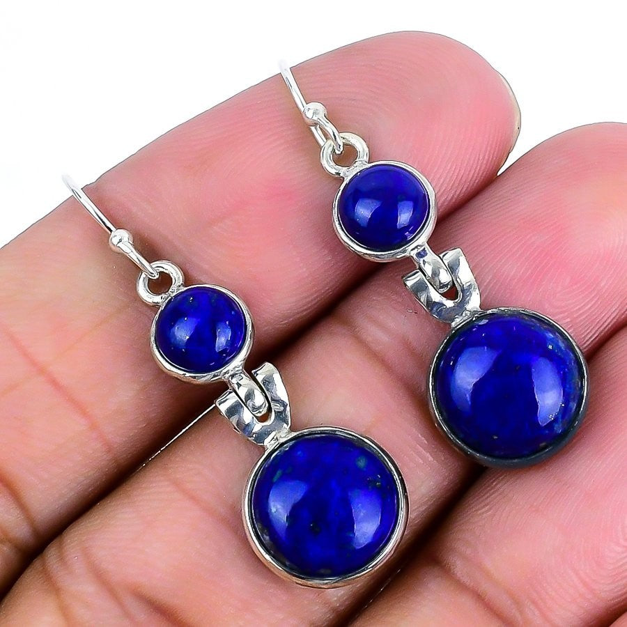 Lapis Lazuli Gemstone Solid Silver Hook Wedding Drop Dangle Anniversary Earrings