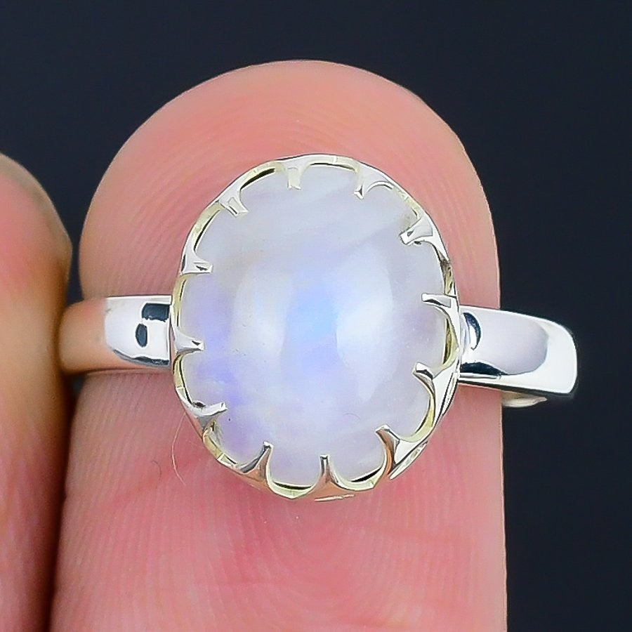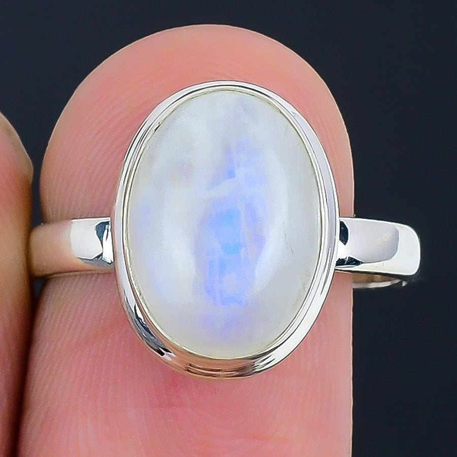 June Natural Moonstone Sterling Silver Birthday Statement Sister New Ring US 8.5