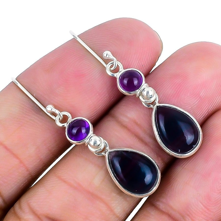 Natural Sage Amethyst 925Ā SolidĀ Silver Bezel Boho Hook Dangle Earrings Jewelry