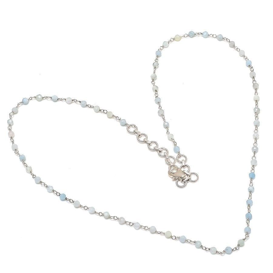 Natural Aquamarine Solid Silver Chain Friendship Day Ethnic Anniversary Necklace