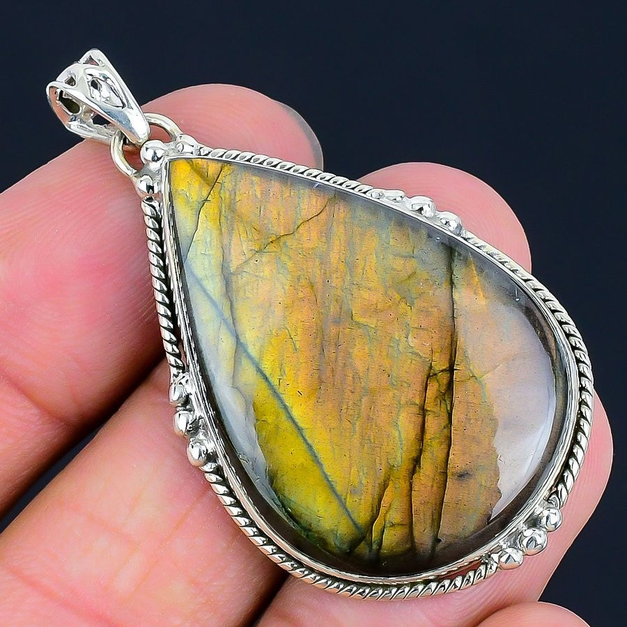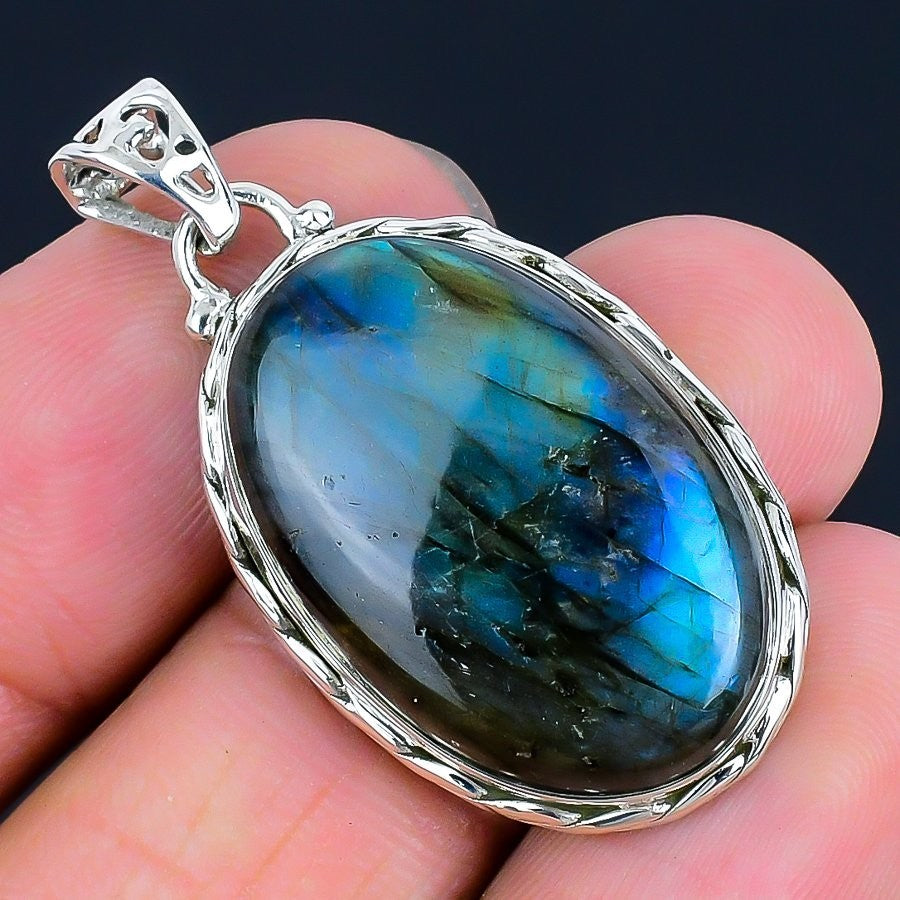 Labradorite Stone 925Ā SolidĀ Silver Friend Gift Engagement Bezel Pendant Jewelry