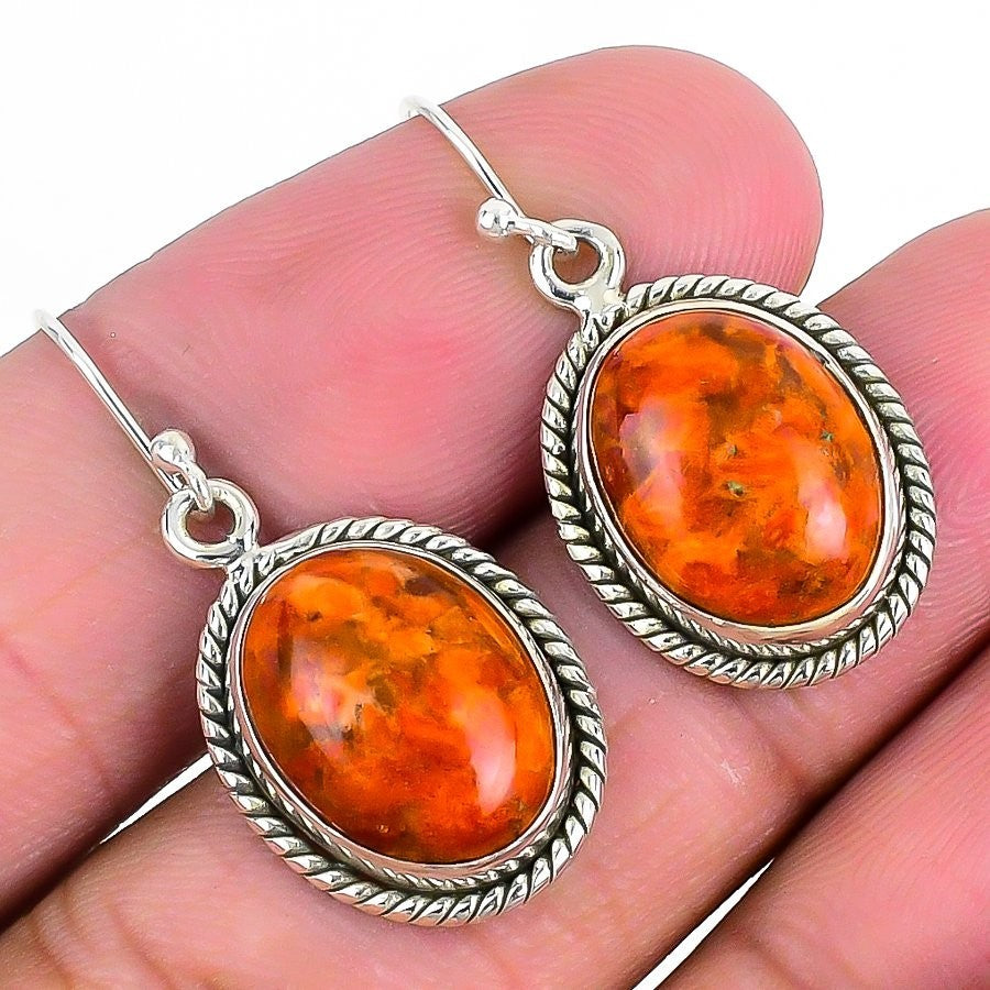 Orange Spiny Oyster Gemstone 925Ā SolidĀ Silver Dangle Drop Friend Gift Earrings