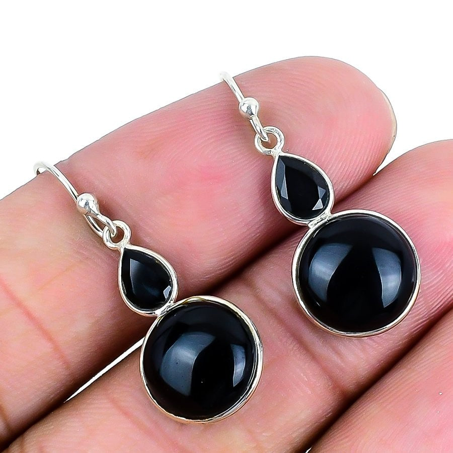 Friendship Day Sale Black Onyx Stone 925 Solid Silver Hook Dangle Drop Earrings