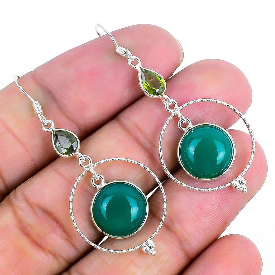 Green Onyx Stone 925 Silver Bezel Drop Daughter Anniversary New Earrings Jewelry