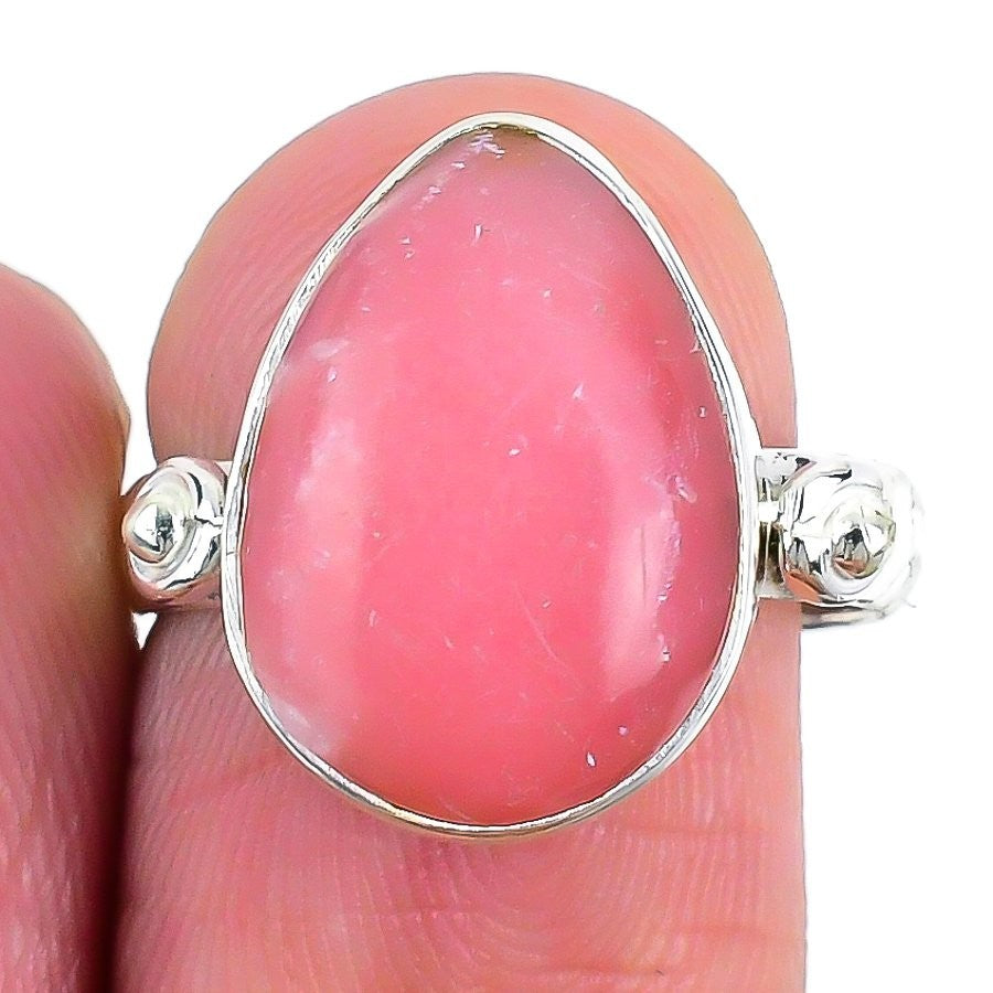 Rhodochrosite Stone Solid Silver Engagement Wedding Boho Stackable Ring Size 7.5