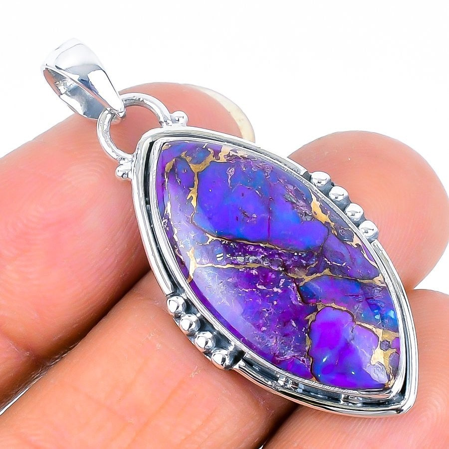 December Copper Purple Turquoise Gemstone 925 Sterling Silver Pendant Jewelry
