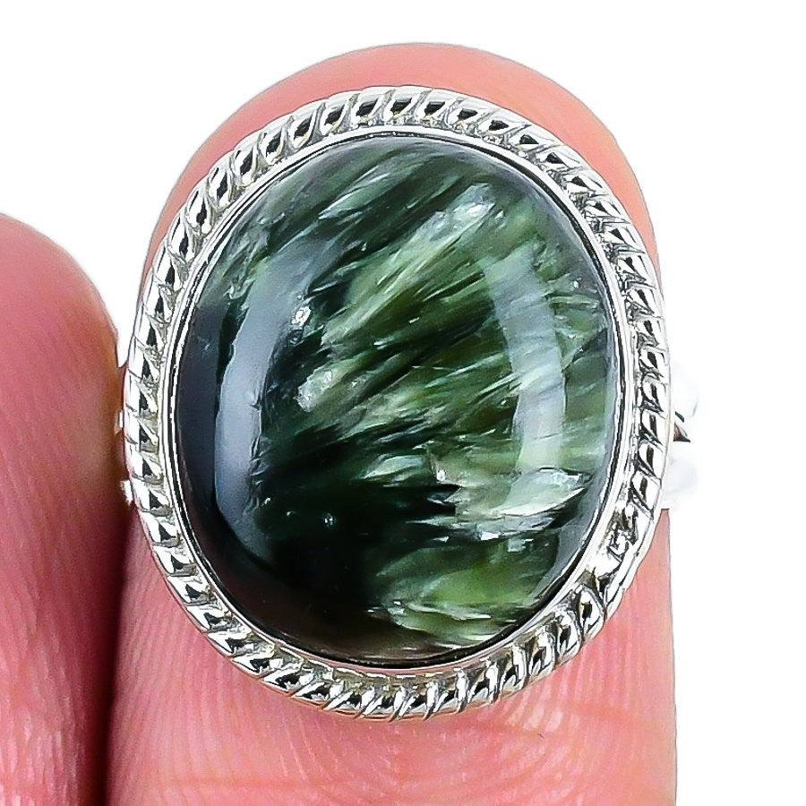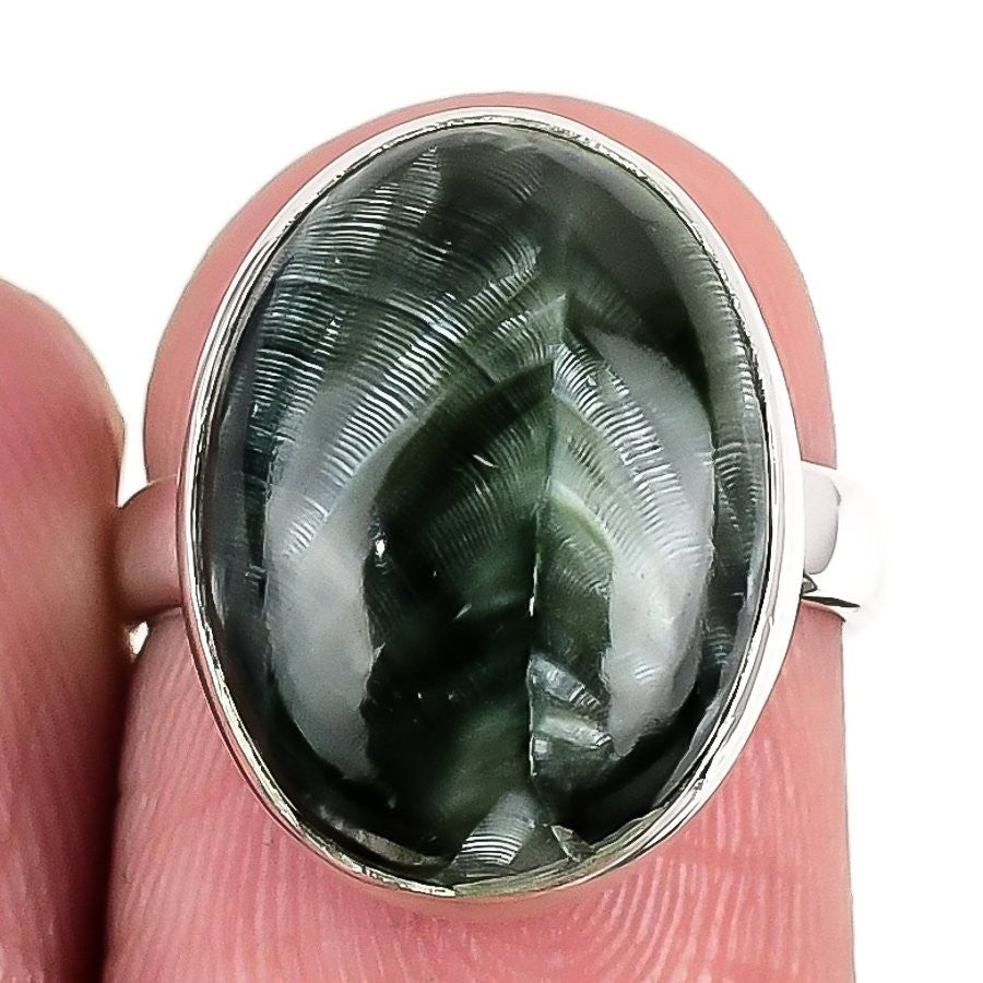 Seraphinite Stone 925 Silver Stackable Handcrafted Promise Statement Ring US 6.5