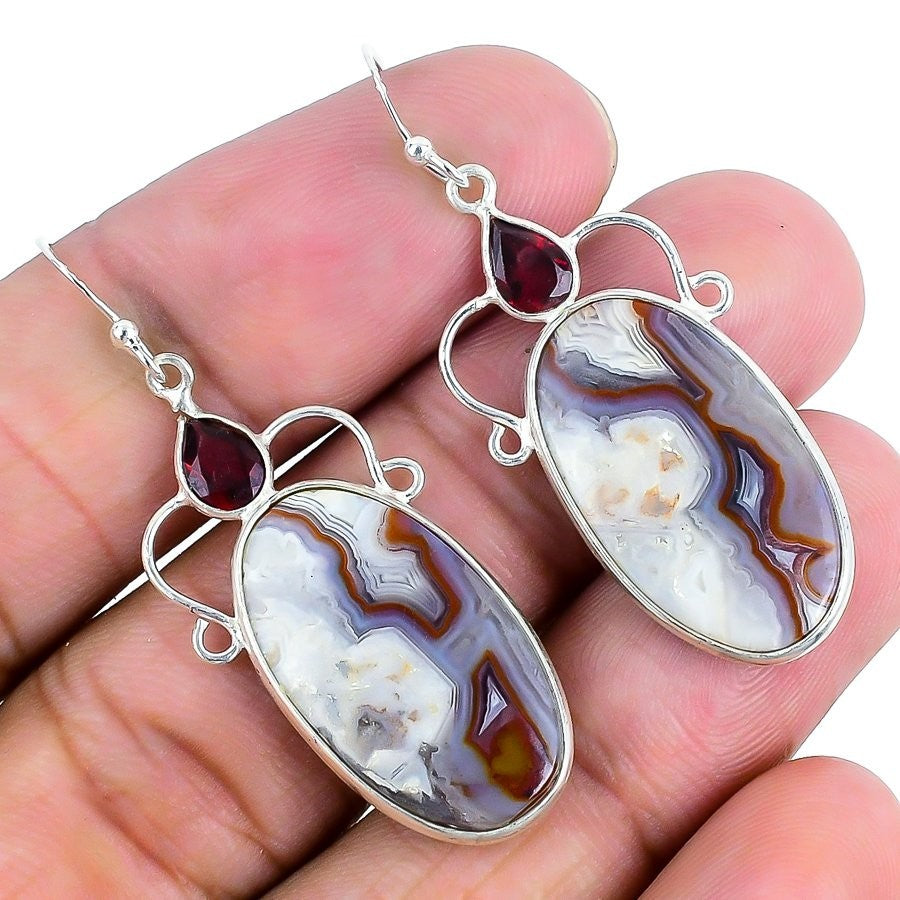 Crazy Lace Agate Gemstone 925 Sterling Silver Drop Hook Bezel Earrings Jewelry